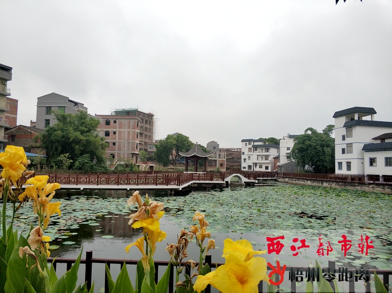 5月22日,在長洲區長洲鎮泗洲村,美人蕉與荷塘、棧橋成為鄉村一景。
