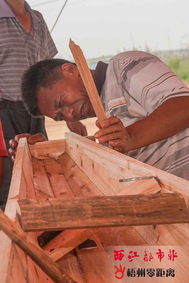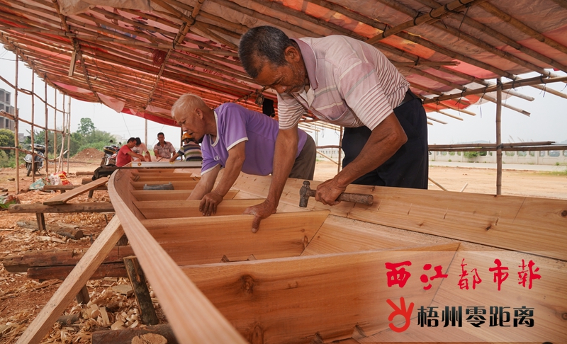 文字:西江都市報(bào)記者 蒙敏瑩 圖片:西江都市報(bào)記者 楊揚(yáng) 4月中旬,初夏未至,空氣中還透著幾分清涼。 在長(zhǎng)洲區(qū)長(zhǎng)洲鎮(zhèn)寺沖村,幾名村民將收藏在廟宇內(nèi)的杉木抬出,請(qǐng)來附近手藝好的老藝人,準(zhǔn)備開始龍舟的制作。 每年端午節(jié),西江邊上,梧州城的男女老少都會(huì)為龍舟賽獻(xiàn)上最熱烈的喝彩聲。而一艘艘奮勇爭(zhēng)先的龍舟背后,有著獨(dú)特的制作工藝。 制作龍舟不是一件簡(jiǎn)單的事情。從選木、裁板,到拋光、打磨,每一道工序都極其繁瑣,每個(gè)環(huán)節(jié)都與最終的成品效果息息相關(guān)。