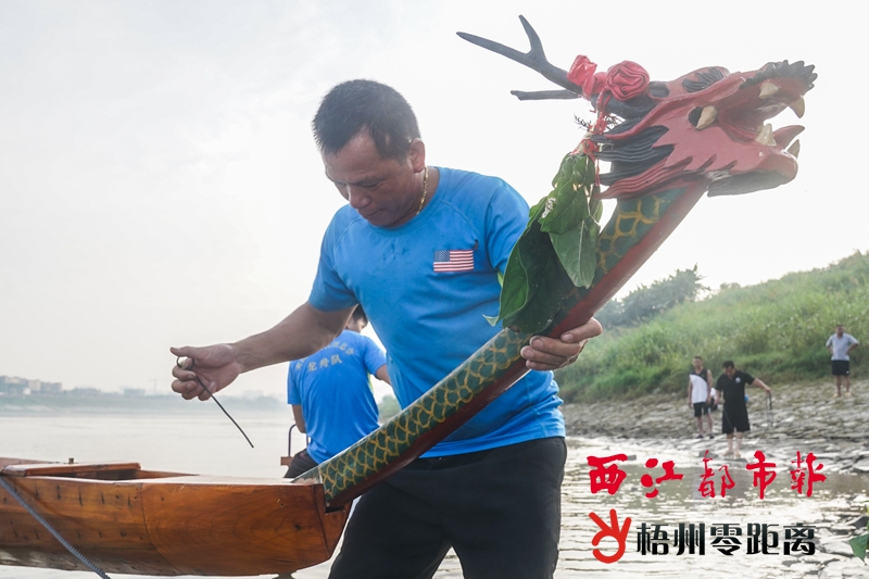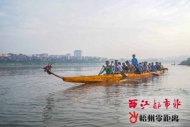 龍舟下水既是為了試測(cè)船的性能,又是為了讓船身適應(yīng)潮濕的環(huán)境,在比賽前將龍舟調(diào)整到最佳狀態(tài)。 5月中旬,李錦偉帶領(lǐng)著隊(duì)員們穿過防洪堤走到江邊,將嶄新的龍舟放進(jìn)西江。江面上,鑼鼓聲起,吶喊聲響,運(yùn)動(dòng)員們奮起劃槳,正緊張備戰(zhàn)即將到來的端午節(jié)龍舟賽。