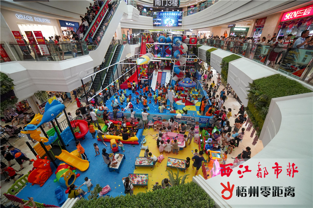 兒童節(jié)當(dāng)天,許多家長(zhǎng)和孩子結(jié)伴出門游玩,梧州市的商場(chǎng)、公園、步行街迎來(lái)大批人流。受雨水影響,旺城廣場(chǎng)、國(guó)泰廣場(chǎng)等商場(chǎng)的室內(nèi)游樂(lè)場(chǎng)更受市民青睞。西江都市報(bào)記者 陳凡 攝