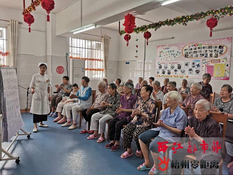 6月5日,市社會福利院的長者在護理人員的帶領下,學唱歌曲《茉莉花》。