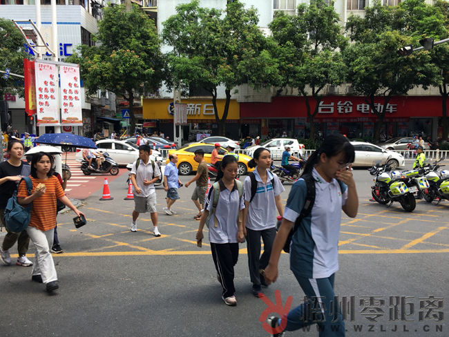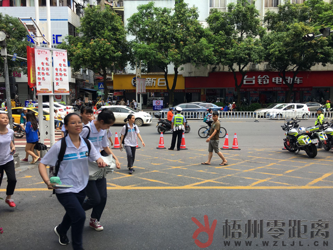 交警在梧州市第一中學考點附近道路疏導交通,提醒過往車輛禮讓考生。 隨著考試開始時間臨近,多名考生或結伴、或在家長的陪同下來到考點,并自信滿滿地步入考場。愛心送考的摩托車輛也是本次高考期間的一道靚麗風景線。考試開始前,記者在梧州市第一中學考點看到,多名考生陸續搭乘愛心送考摩托車到來。