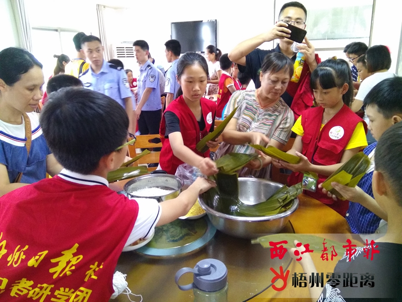 楊柳炳拾起一把斧頭,并把一塊盾牌交給了家長代表譚先生。然后,楊柳炳在不打招呼的情況直接朝著譚先生發起攻擊。此時,譚先生本能地只懂得舉起盾牌防御,他身后的兩名小記者學員也顯得驚慌失措?!帮@然,這樣的防御是無效的。”楊柳炳停下進攻的腳步,轉身向小記者們做起了現場分析。 “我覺得他們不夠冷靜?!庇^看完上面發生的一幕,臺下的小記者覃宇顥說道。他的話,讓楊柳炳豎起了大拇指。另一邊,家長代表譚先生也坦言,自己被突如其來的進攻“嚇傻了”?!澳敲矗_的做法應該是怎樣的呢?”小記者王磊追問道。 為了充分展示防暴恐的方法,楊柳炳總結了一個口訣:“暴恐來襲要冷靜,一邊防御一邊逃?!睏盍ㄗh,如果遇到有人持斧頭襲來,首先是想盡辦法逃到安全地帶。其次,大家可以選擇相對隱蔽的地方藏起來。如果周邊環境不利于迅速撤離,則可以利用身邊一切物品,朝著恐怖分子的要害部位進行還擊,待時機成熟后再迅速撤離。同時,楊柳炳分別示范了用掃把、錐桶和滅火器來進行防御的方法。 一連串接近實戰模擬的精彩示范,讓小記者們驚嘆不已。小記者許超航感慨地說道:“這樣的學習比單看書本印象深多了!” 與警察叔叔一起包粽子 當天是端午佳節。因此,小記者研學團活動特意增設了“包粽子”環節。這也讓小記者們喜出望外。小記者戴梓柔說:“粽子平時吃得多,但自己動手包粽子還是頭一回?!?/p> 市民姚阿姨是一名包粽子能手。當天,她作為特邀講師來到現場給小記者傳授包粽子的技巧。只見姚阿姨快速完成了一個粽子的包裹過程,這讓許多小記者看傻了眼。隨后,小記者們紛紛拿起粽葉開始效仿,可是,大家包的粽子都不合格。