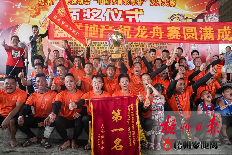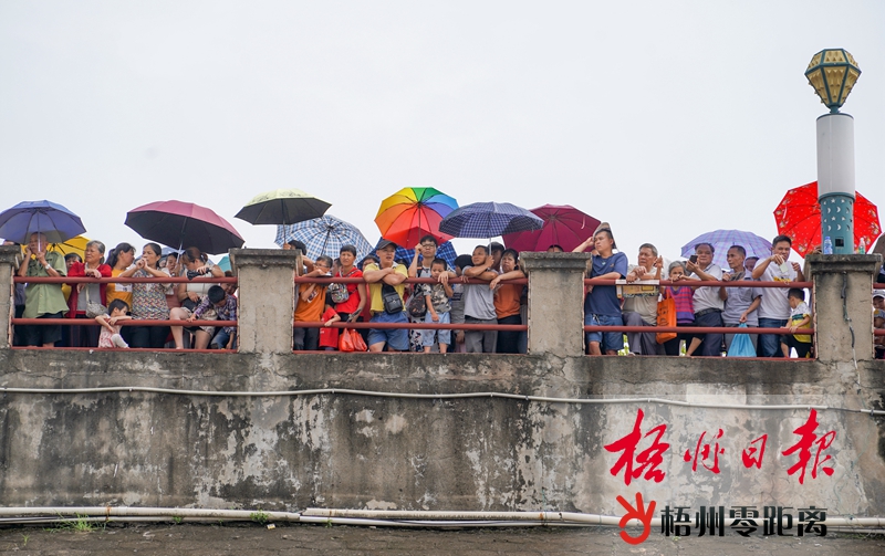梧州日報(bào)記者 曾 燕/文 鼓聲雷鳴,龍舟飛馳,西江河畔數(shù)萬觀眾吶喊助威,歡聲雷動……6月9日,慶祝中華人民共和國成立70周年暨紀(jì)念“發(fā)展體育運(yùn)動,增強(qiáng)人民體質(zhì)”題詞67周年全民健身主題活動·梧州市市民運(yùn)動會“中國體育彩票杯”龍舟大賽在西江隆重舉行,13支龍舟隊(duì)沿江而下,宛若蛟龍出水,劈波斬浪,競逐風(fēng)流。 經(jīng)過7500米的激烈角逐,龍圩區(qū)四合聯(lián)隊(duì)成功衛(wèi)冕,獲得第一名,實(shí)現(xiàn)三連冠。長洲區(qū)龍華龍舟隊(duì)、藤縣濛江鎮(zhèn)時(shí)代華府龍舟隊(duì)分獲第二、第三名。 全民參與熱情洋溢 今年的比賽在西江大橋汊河橋下河面至梧州海關(guān)對出河面舉行。上午9時(shí),正式比賽還未開始,西江河畔、防洪堤上就已經(jīng)熱鬧起來,市民群眾紛紛向這里聚攏。