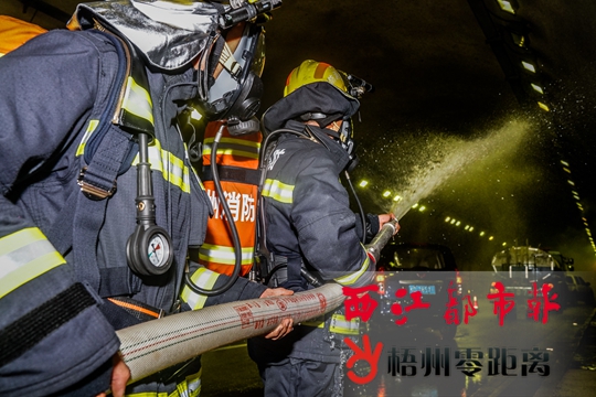 這是中冶馬梧高速聯(lián)合市消防、公安交警、交通部門及梧州市中醫(yī)醫(yī)院,在G65包茂高速上行線飛田隧道內(nèi)開展突發(fā)事件應(yīng)急處置演練的一幕。