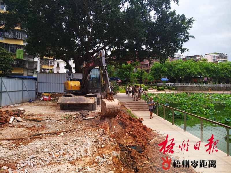 6月18日,在潘塘公園荷花池西側,施工機械正在平整地塊?! ?/span>