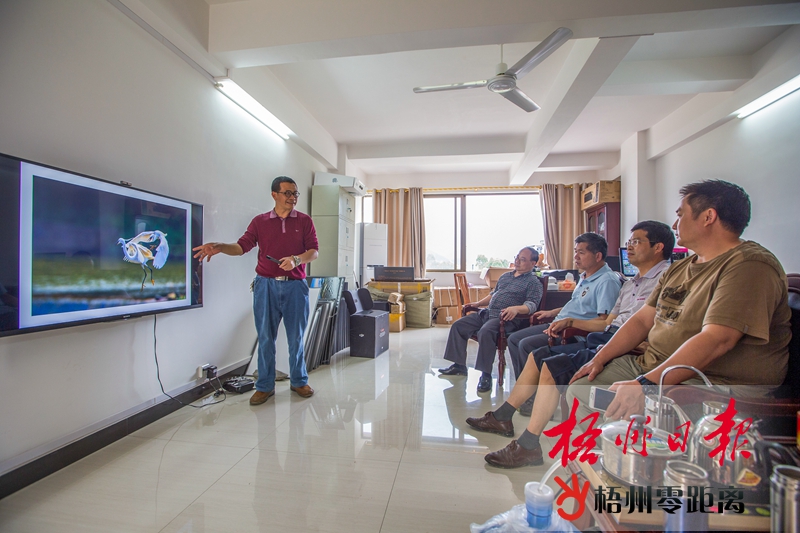 李世權(左一)給會員點評作品。
