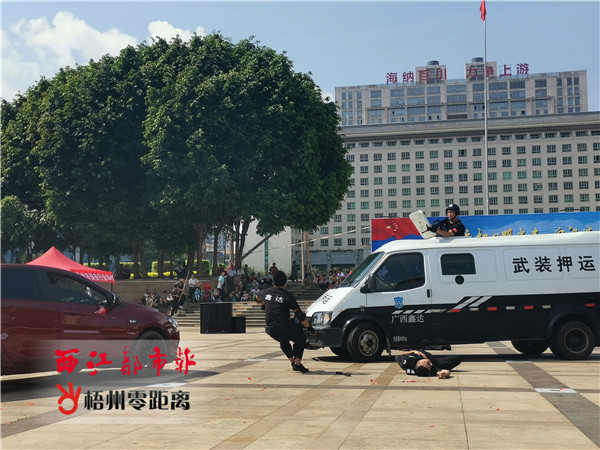 梧州零距離-梧州日報訊(記者 曾韻 通訊員 曾亮)7月25日,“不忘初心跟黨走、牢記使命勇?lián)?dāng)”全國保安主題宣傳日活動暨梧州市保安行業(yè)服務(wù)國慶安保工作啟動儀式在市政廣場舉行。這是我市首次舉行以“保安”這一職業(yè)為主題的宣傳活動。