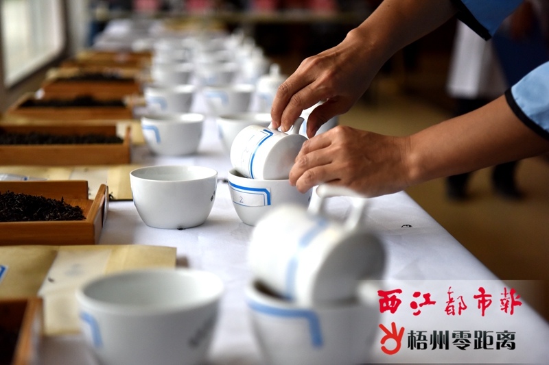 梧州零距離網(wǎng)-西江都市報(bào)訊(記者 陳雨燕)“中茶杯”2019梧州六堡茶民間斗茶大賽“金舌頭對(duì)決”戰(zhàn)況激烈,“茶葉比斗”項(xiàng)目接力“開(kāi)戰(zhàn)”。10月26日,“茶葉比斗”項(xiàng)目的首場(chǎng)預(yù)選賽,在本次賽事全程總冠名贊助單位——梧州中茶茶業(yè)公司的展示大廳舉行。42個(gè)參賽茶樣分現(xiàn)代工藝和傳統(tǒng)工藝兩組,按不同的年份輪次展開(kāi)競(jìng)逐。其中,15個(gè)現(xiàn)代工藝茶樣、11個(gè)傳統(tǒng)工藝茶樣成功晉級(jí)復(fù)賽。