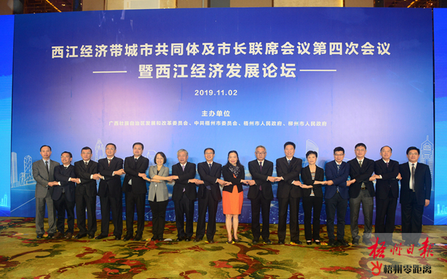 梧州零距離網-梧州日報訊(記者 祝琳)11月2日,西江經濟帶城市共同體及市長聯席會議第四次會議暨西江經濟發展論壇在我市舉行。市長李杰云代表梧州市作主題發言,提議珠江—西江經濟帶沿線各城市抓住粵港澳大灣區發展的戰略機遇,加強對接、緊密合作、攜手前行,深化經濟社會各領域交流合作,提升經濟帶互聯互通水平,共同推動經濟帶合作發展邁上新臺階。