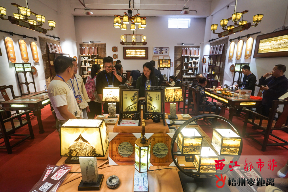 草花玉展區(qū)展出的家具和家居飾品富有美感。記者 楊揚(yáng) 攝 在現(xiàn)場(chǎng),不少梧州本地的寶石美玉和工藝品同場(chǎng)展示,體現(xiàn)出玉石文化與現(xiàn)代工藝碰撞出的“火花”。在梧州市金美綠禾投資開(kāi)發(fā)有限公司的草花玉工藝品展位,用紅木與和田草花玉一起制作而成的桌椅、臺(tái)燈、壁畫等家具和家居飾品琳瑯滿目,透過(guò)光滑的和田草花玉表面,可清晰看到深色的類似于雜草的紋路,富有美感。該公司經(jīng)理賴森聯(lián)介紹,這些玉塊直接從天然玉石上切割出來(lái),厚度僅1毫米,“我們的產(chǎn)品不僅在國(guó)內(nèi)暢銷,還遠(yuǎn)銷至東南亞,深受顧客喜愛(ài)”。 除了這種實(shí)用性的玉石展品,極具觀賞性的金砂玉雕也讓游客嘖嘖稱奇。在岑溪金砂玉特裝展區(qū),展出了大小不一、形神兼?zhèn)涞慕鹕坝竦窆に嚻贰V西金砂玉研究協(xié)會(huì)副會(huì)長(zhǎng)兼秘書長(zhǎng)高林介紹,岑溪金砂玉內(nèi)含云母片,所以閃閃發(fā)光,金砂玉的巡展足跡已遍及北京、上海、深圳、廈門等地。 |