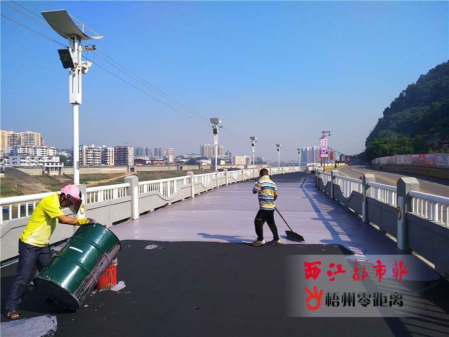 據(jù)悉,我市正在對河?xùn)|防洪堤(龍母廟至鴛江大橋北橋頭)堤段實(shí)施提升改造工程。目前,防洪堤護(hù)欄等已經(jīng)完成噴涂工作,堤面塑膠步道鋪設(shè)了底層涂料,其余鋪設(shè)改造工作正在加快推進(jìn)。梧州零距離-梧州日報記者 李鴻榮 攝