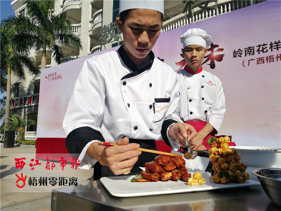 梧州零距離-西江都市報訊(記者 吳艷虹)11月14日,2019年第四屆廣西嶺南風情文化旅游周“嶺南之味”嶺南花樣廚神擂臺賽廣西梧州賽區選拔賽在梧州商貿學校舉行。30名年輕廚藝技師同臺競技,烹飪出各式美味佳肴。經過激烈比拼,孫于深等3人分別斬獲該場賽事的冠、亞、季軍,他們將代表梧州賽區征戰總決賽。