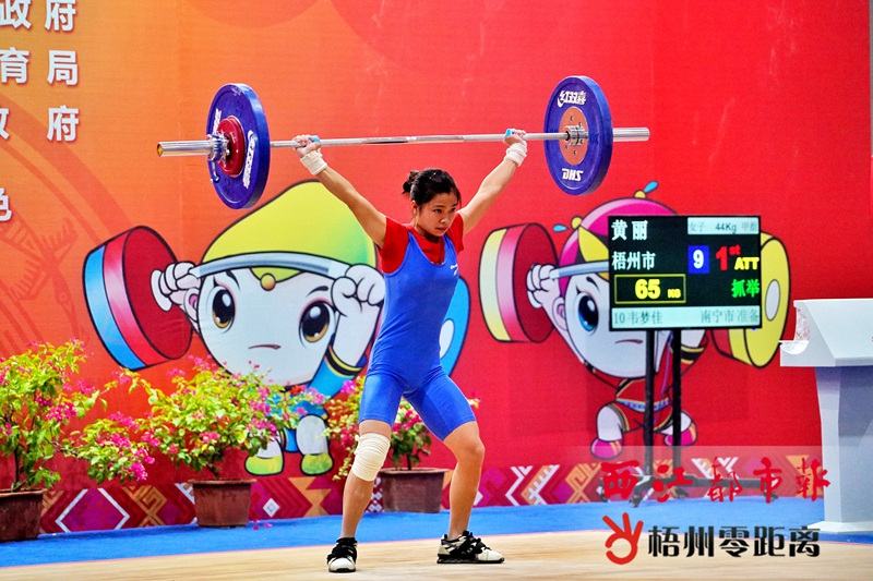 梧州零距離-西江都市報訊 11月19日晚,廣西壯族自治區第十四屆運動會女子舉重和蹼泳項目的比賽,在百色市體育中心舉行。當晚,梧州市代表團奪得1金4銀1銅。 在女子甲組舉重44公斤級決賽中,梧州市運動員黃麗帶傷上陣依然發揮出色,獲得挺舉冠軍、抓舉亞軍的好成績。最終,她以挺舉84公斤、抓舉70公斤,總分第二名的成績奪得一枚金牌和兩枚銀牌。梧州市運動員肖艷芳則獲得女子丙組舉重48公斤級一枚銀牌和一枚銅牌。
