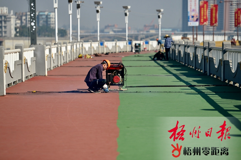 12月11日,施工人員在龍母廟對出的河?xùn)|防洪堤堤頂進行步道施工。 目前,鴛江橋至龍母廟段河?xùn)|防洪堤堤頂正進行步道施工,步道約長2200米,預(yù)計年底前可完成施工。