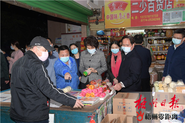 2月15日,國(guó)務(wù)院應(yīng)對(duì)新冠肺炎疫情防控機(jī)制綜合組第十九指導(dǎo)組組長(zhǎng)盧江一行在市領(lǐng)導(dǎo)全桂壽、鐘暢姿的陪同下,檢查新城市場(chǎng)的疫情防控工作及市場(chǎng)供應(yīng)情況。記者 蒙紹松 攝 盧江指出,疫情發(fā)生后,梧州市委、市政府深入貫徹習(xí)近平總書記關(guān)于疫情防控的重要講話精神和指示批示精神,全面落實(shí)黨中央、國(guó)務(wù)院決策部署,領(lǐng)導(dǎo)靠前、一線擔(dān)當(dāng),多措并舉、科學(xué)防治,從嚴(yán)從實(shí)、嚴(yán)防嚴(yán)控,疫情防控工作取得初步成效。她強(qiáng)調(diào),當(dāng)前疫情防控形勢(shì)依然嚴(yán)峻,梧州市要充分認(rèn)識(shí)疫情防控工作的重要性和復(fù)雜性,強(qiáng)化憂患意識(shí)、風(fēng)險(xiǎn)意識(shí),牢固樹立底線思維,準(zhǔn)確把握疫情發(fā)展新趨勢(shì)和防控工作新要求,層層傳導(dǎo)壓力,抓實(shí)抓細(xì)措施,不放過(guò)任何一個(gè)薄弱環(huán)節(jié)和工作短板。要進(jìn)一步強(qiáng)化各個(gè)交通卡口的排查篩查,規(guī)范醫(yī)療機(jī)構(gòu)預(yù)檢分診制度,科學(xué)開(kāi)展監(jiān)測(cè)分析和救治工作,切實(shí)做到早發(fā)現(xiàn)、早報(bào)告、早隔離、早治療,千方百計(jì)堵源頭、防漏洞。要嚴(yán)格落實(shí)社區(qū)和農(nóng)村管控措施,織密重點(diǎn)人群防控網(wǎng),全面掌握有關(guān)人員信息和情況,做實(shí)做細(xì)治愈患者、疑似人員及接觸者的跟蹤管理,切斷傳播鏈條,防止疫情擴(kuò)散蔓延。要加強(qiáng)對(duì)公共場(chǎng)所的消毒和防護(hù)工作,加大有效宣傳力度,增強(qiáng)群眾防護(hù)意識(shí)和防護(hù)能力,推進(jìn)聯(lián)防聯(lián)控、群防群控,堅(jiān)決打贏疫情防控阻擊戰(zhàn)。 全桂壽表示,全市上下要切實(shí)提高政治站位,認(rèn)真貫徹落實(shí)黨中央、國(guó)務(wù)院決策部署和自治區(qū)黨委、政府工作要求,把疫情防控作為當(dāng)前最重要的工作,壓實(shí)責(zé)任,強(qiáng)化措施,推進(jìn)科學(xué)防控、精準(zhǔn)防控、有效防控。要根據(jù)指導(dǎo)組的意見(jiàn)和建議,逐項(xiàng)梳理研究,針對(duì)問(wèn)題明確整改措施,進(jìn)一步補(bǔ)短板強(qiáng)弱項(xiàng)抓落實(shí),逐條逐項(xiàng)對(duì)標(biāo)對(duì)表,做到舉一反三,從嚴(yán)切斷疾病傳播途徑。要完善工作機(jī)制,加強(qiáng)社區(qū)和農(nóng)村聯(lián)防聯(lián)控,做到嚴(yán)防死守不麻痹、持續(xù)作戰(zhàn)不松懈,提高疫情防控專業(yè)化、規(guī)范化、法治化水平,堅(jiān)決守護(hù)好人民群眾生命安全和身體健康。 自治區(qū)衛(wèi)生健康委黨組成員馬寧,市領(lǐng)導(dǎo)黃振饒、吳浩嶺、蘇穎、匡伯彪、徐文偉、李彤華分別陪同檢查。 ■防控新冠肺炎疫情健康知識(shí) 如何保護(hù)自己遠(yuǎn)離新型冠狀病毒的肺炎傳染? 1.勤洗手。使用肥皂或洗手液并用流動(dòng)水洗手,用一次性紙巾或干凈毛巾擦手。雙手接觸呼吸道分泌物后(如打噴嚏后)應(yīng)立即洗手。 2.保持良好的呼吸道衛(wèi)生習(xí)慣。咳嗽或打噴嚏時(shí),用紙巾、毛巾等遮住口鼻,咳嗽或打噴嚏后洗手,避免用手觸摸眼睛、鼻或口。 3.增強(qiáng)體質(zhì)和免疫力。均衡飲食、適量運(yùn)動(dòng)、作息規(guī)律,避免產(chǎn)生過(guò)度疲勞。 4.保持環(huán)境清潔和通風(fēng)。每天開(kāi)窗通風(fēng)數(shù)次不少于3次,每次20-30分鐘。戶外空氣質(zhì)量較差時(shí),通風(fēng)換氣頻次和時(shí)間應(yīng)適當(dāng)減少。 5.盡量減少到人群密集場(chǎng)所活動(dòng),避免接觸呼吸道感染患者。 6.如出現(xiàn)呼吸道感染癥狀如咳嗽、流涕、發(fā)熱等,應(yīng)居家隔離休息,持續(xù)發(fā)熱不退或癥狀加重時(shí)及早就醫(yī)。 (據(jù)新華網(wǎng))