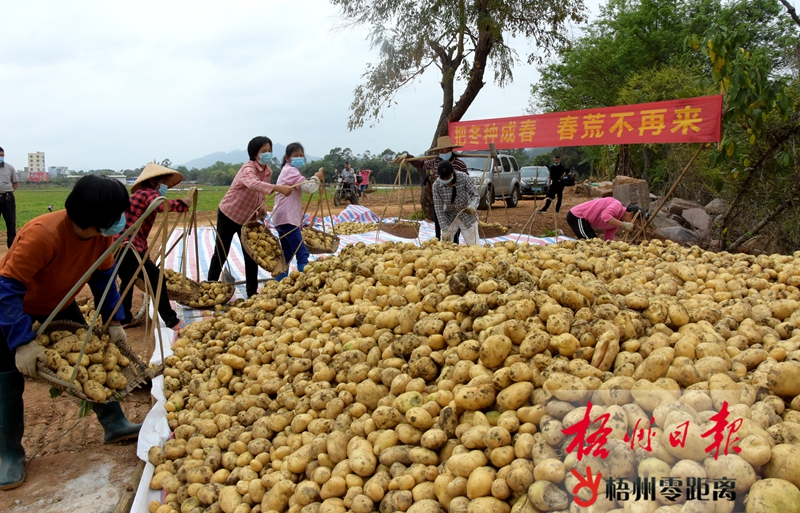 3月3日,在岑溪市歸義鎮荔枝村冬種馬鈴薯示范項目種植基地,大批馬鈴薯正在等待裝車銷往珠三角地區。