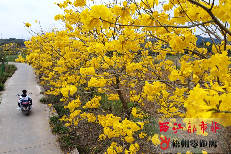 眼下,在萬秀區(qū)夏郢鎮(zhèn)思良江休閑農(nóng)業(yè)(核心)示范區(qū),生長在道路旁的黃鐘木盛開滿樹的黃色花朵,一片生機(jī)勃勃的景象。這種被當(dāng)?shù)厝朔Q為“風(fēng)鈴花”的花朵黃澄澄的,甚是好看。記者 何鎏 攝