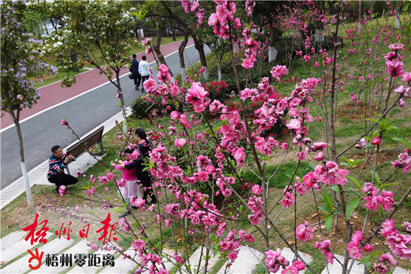 3月7日,玫瑰湖公園內隨處可見的桃花吸引市民拍照。記者 何鎏 攝