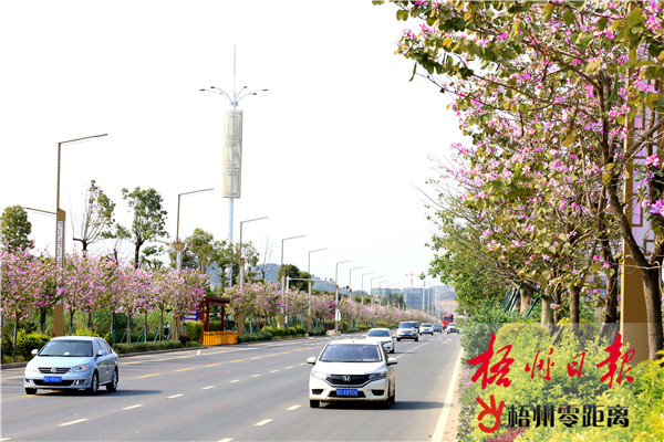 3月11日,藤縣藤州大道紫荊花繁花競放,處處皆景。藤州大道長達數公里,盛放的紫荊花,讓道路成為一道靚麗的風景線,令來往的車輛和行人心曠神怡,贊不絕口。李偉明 歐偉文 攝