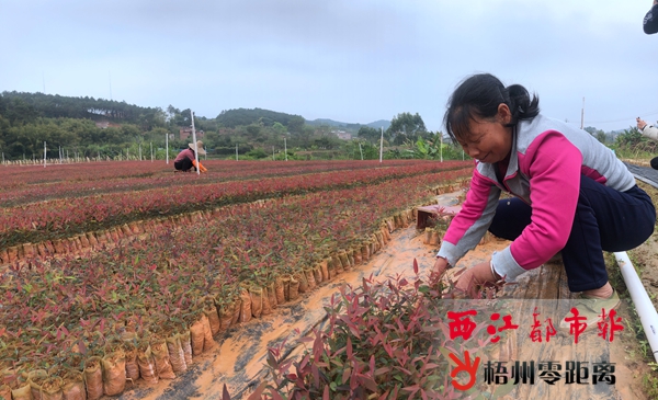 梧州零距離網-西江都市報訊(記者 謝韻 通訊員 黎海平) 3月12日,廣西春和景明林業開發有限公司總工程師韋建曉,早早就來到位于萬秀區城東鎮河口村的萬秀區花卉種苗生物中心基地,查看基地里大葉海棠的生長情況,并了解即將出售的桉樹種苗的篩選進度。此時,公司聘請的四五名當地村民正忙著將桉樹種苗擺放整齊。