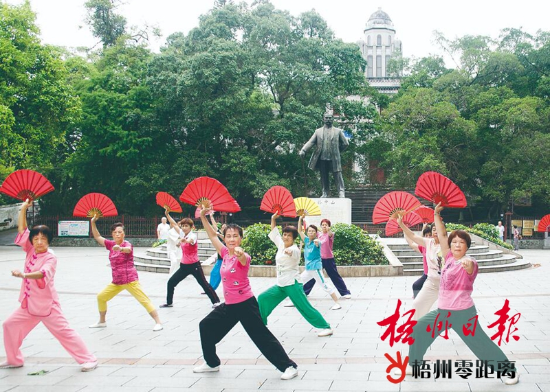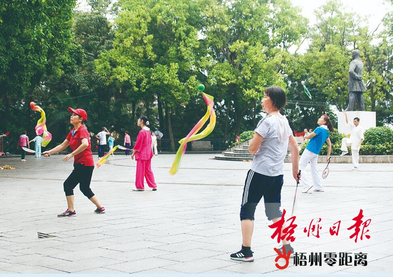 梧州日報記者 冼振宇/文 通訊員 李偉心/攝 連日來,炎熱的天氣也擋不住群眾開展健身運動的熱情,在鴛鴦江畔、在中山公園、在社區小游園、在居民小區的花園……隨處可以看到不少健身愛好者活躍的身影,他們在公共娛樂休閑場所跳廣場舞、打太極拳、揮拍打乒乓球,享受著健康快樂的運動時光。 每天的早晨和傍晚時分,在中山公園、鴛江春泛、潘塘公園等地,前往鍛煉身體的群眾絡繹不絕,老年人跳廣場舞、打太極拳,年輕人跳健身操、韻律舞,還有一些小朋友跟著爺爺奶奶在廣場抖手臂、扭扭腰,開展快樂健身運動。