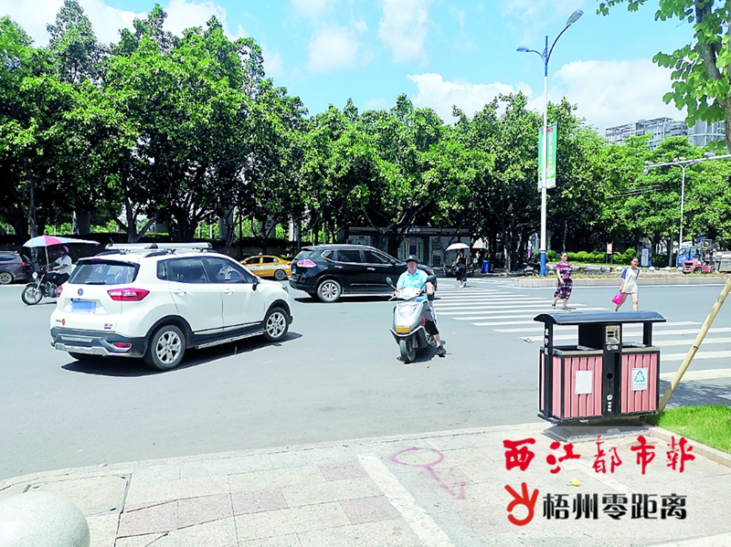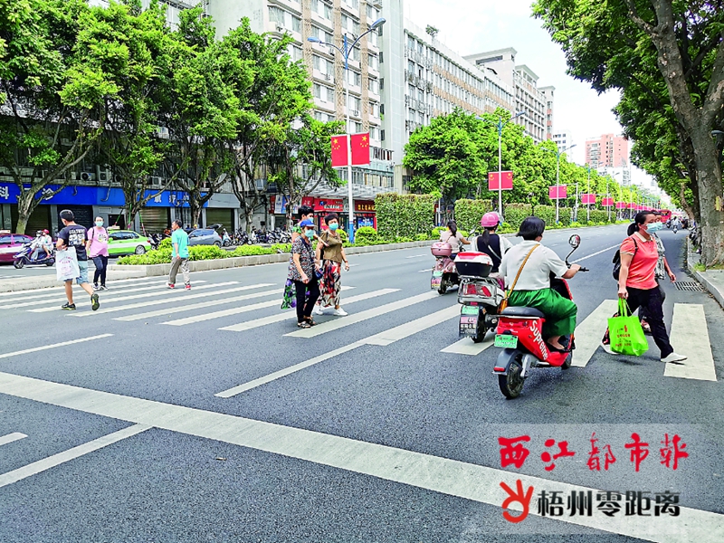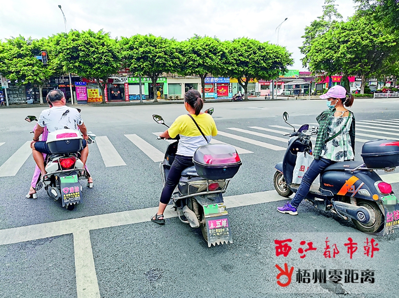 梧州零距離網-西江都市報訊(記者姚藍婷)行人及交通參與者做到文明、安全出行,體現著一個城市的文明素質。近段時間以來,我市公安交警部門持續開展交通秩序整治行動,使城市道路交通管理水平得到有效提升。但是,7月7日,記者走訪發現,在街頭還存在著闖紅燈、不戴頭盔、違反交通標識行駛、占道停車等交通不文明現象,既影響城市道路暢通,也給市民的出行“添堵”。 過馬路要走斑馬線是最基本的道路交通規則,在新興三路和冬湖路交界路口,大多市民都能遵守交通規則,按照紅綠燈指示信號,有序地通過十字路口。但有個別行人和騎電動車的市民,無視紅綠燈信號隨意通行,擾亂正常的交通秩序。