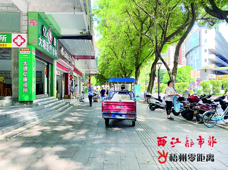 10時,一輛三輪車在新興二路的人行道上逆行。楊揚 攝