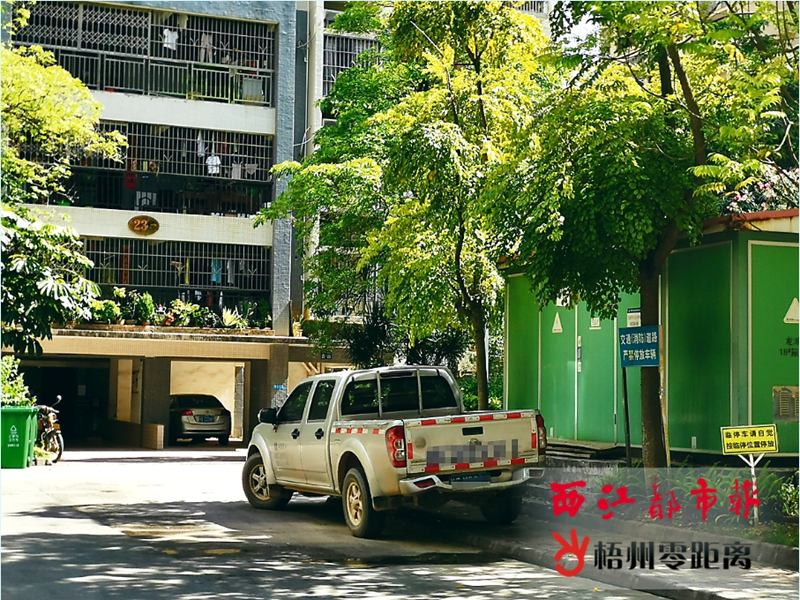 7月8日10時許,龍湖春天小區23幢居民樓旁,有車輛停放在消防通道內。紀榮蘭 攝 |