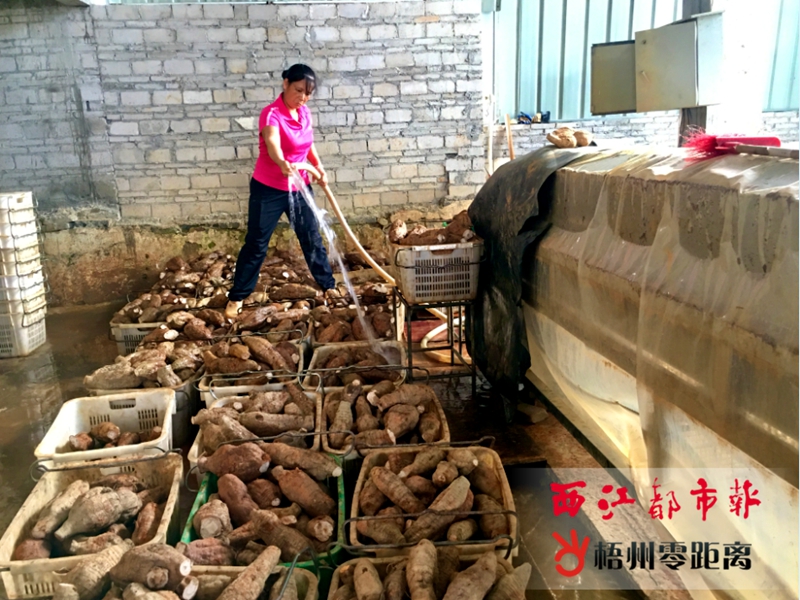 7月3日,在和平鎮粉葛加工廠里,工人正在清洗粉葛。(記者 林丹莉 攝) 此外,和平鎮還依托“葛色天香”粉葛示范區提質增效,發動更多貧困戶參與粉葛種植、加工和銷售,粉葛種植面積逐年提高。今年參與粉葛種植和銷售的貧困戶達到2000多戶,其中落實以獎代補的貧困戶1700多戶,累計發放種植粉葛項目以獎代補資金達1073多萬元,大大增強了貧困戶自身脫貧能力。 該鎮還在粉葛深加工產業鏈上狠下工夫,用市場經濟的理念來謀劃粉葛產業發展。目前,當地的3家粉葛加工企業年加工粉葛共計4300噸左右,年產值過億元,主要產品有葛茶、葛面、葛粉等。這些企業在大力開發“葛”系列產品的同時,積極在珠三角、云貴、湖南等地開拓銷售渠道,并建設網絡銷售平臺,確?!稗r戶種得出、市場有人收”。