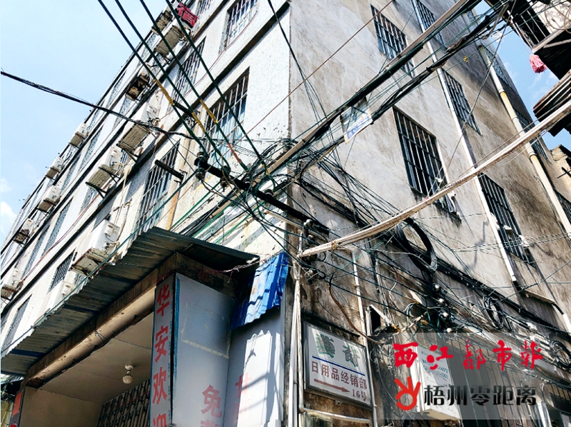 梧州零距離網-西江都市報訊 7月10日,本報對我市萬秀、長洲、龍圩三個城區的電線亂拉亂象進行了曝光。7月23日,記者在對被曝光地點進行回訪時發現,部分地方電線亂拉的情況已得到初步整改,但線纜橫空的問題在一些地方依然存在,相關情況在一些背街小巷、老舊住宅密集區域尤為明顯。8月19日,記者再次對在第一次回訪中整改不完善的地方進行第二次回訪,了解最新的情況。 8月19日上午,記者來到萬秀區,對東中路馬王街、東中路萬壽宮市場附近的道路進行第二次回訪。其間,記者發現,這里的居民區及樓房密集社區“線亂拉”情況依舊:在東中路馬王街的居民樓間,還能看到雜亂的電線;在東中路萬壽宮市場附近,成捆的線纜距離地面很近,對附近居民及行人造成了一定的安全隱患。對比第一次回訪的情況,這兩處地方“線亂拉”的情況沒有得到整改。據了解,這兩處“線亂拉”問題的責任社區為萬秀區城北街道辦事處北山社區,責任單位則分別是中國聯通梧州分公司、中國電信梧州分公司。