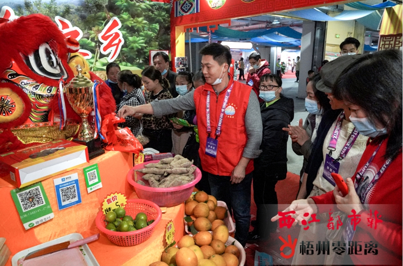 12月7日,市民在梧州名特優產品展銷現場選購特產。