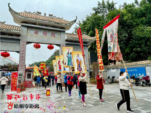 梧州零距離網-西江都市報訊(記者 林丹莉)12月15日,一年一度的五龍朝母節活動在梧州市龍母文化景區舉行,吸引了許多本地市民和兩廣地區的游客前來參與,近距離感受龍母文化的魅力。