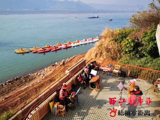 1月12日,陽光穿透江面的霧氣,灑在鴛江春泛的露臺上。迎著寒冷的江風,一隊老人組成的粵劇班,在露臺上自彈自唱。此時江邊露天氣溫只有不足5℃,老人們的粵韻卻讓露臺上的氣氛升溫,感染著周圍晨運的人們,為寒冬的清早添上帶有溫度的音符。 西江都市報記者 何鎏 攝