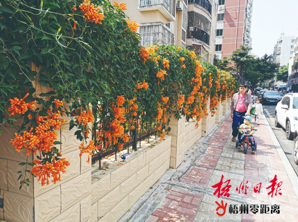 2月20日,長洲區銀湖南路一個小區圍欄上的炮仗花開得成串成片,爛漫耀眼。連日來,市區陽光燦爛,天氣和暖,深受市民喜愛的炮仗花更是開得紅紅火火,給新年增添新氣象。 田一月 攝