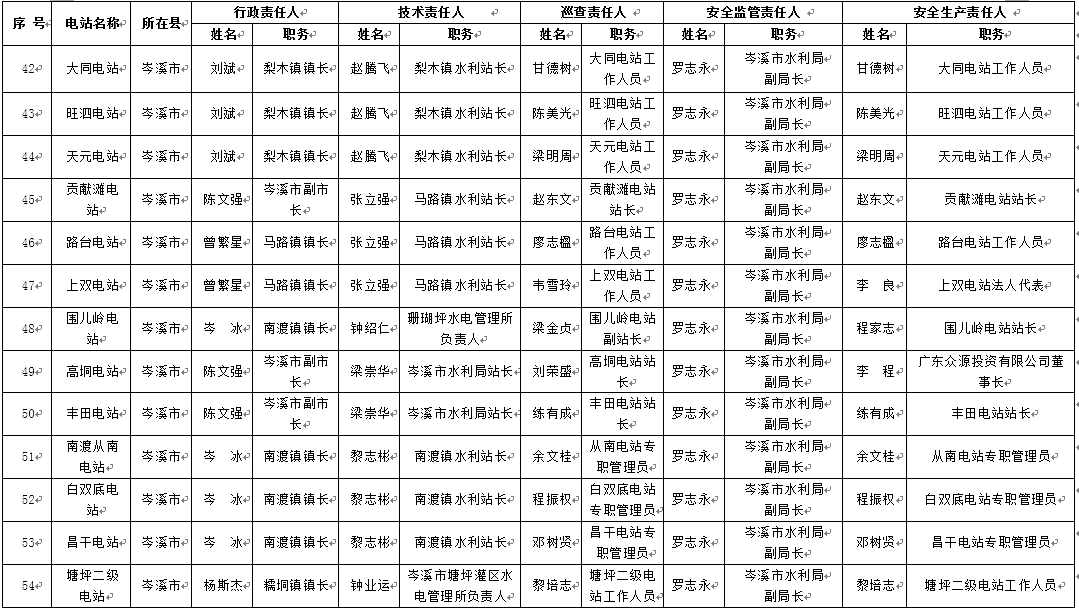 梧州市2021年農(nóng)村水電站防汛責(zé)任人和安全生產(chǎn)“雙主體”責(zé)任人名單