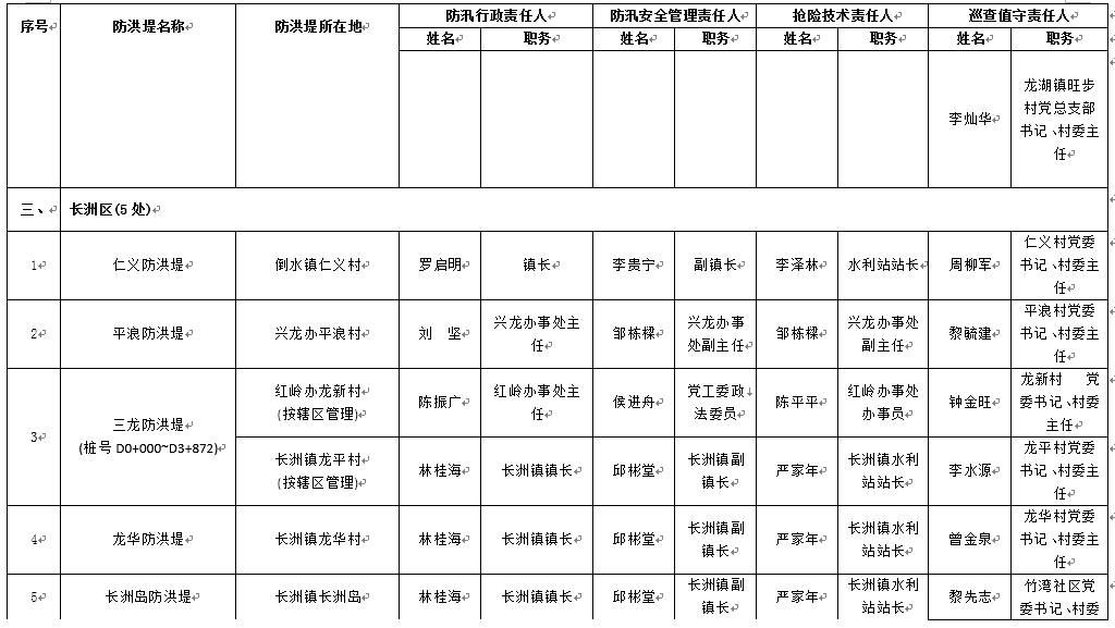 防汛安全管理、搶險(xiǎn)技術(shù)、巡查值守責(zé)任人名單