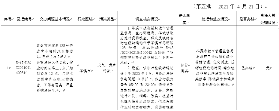 群眾信訪舉報轉辦和邊督邊改公開情況一覽表
