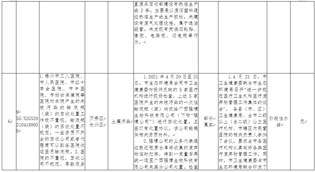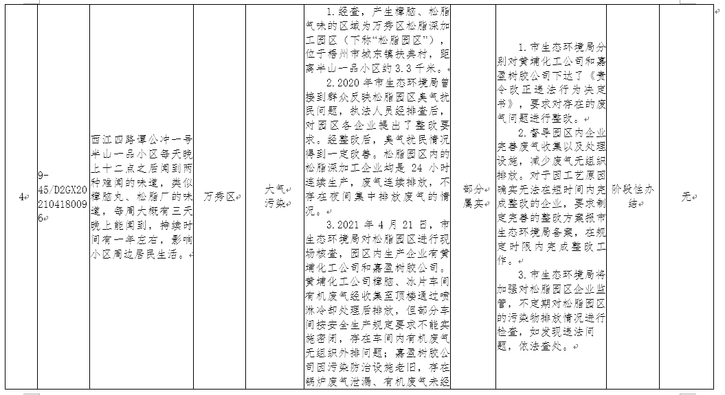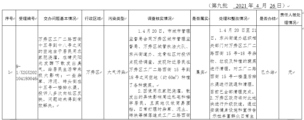 4月19日,中央第七生態(tài)環(huán)境保護(hù)督察組向梧州市交辦第九批群眾舉報(bào)案件共8件。梧州市委、市政府高度重視,第一時(shí)間明確責(zé)任承辦單位,并開展調(diào)查處理及整改工作。現(xiàn)將第九批8件群眾舉報(bào)案件調(diào)查處理情況通報(bào)如下: