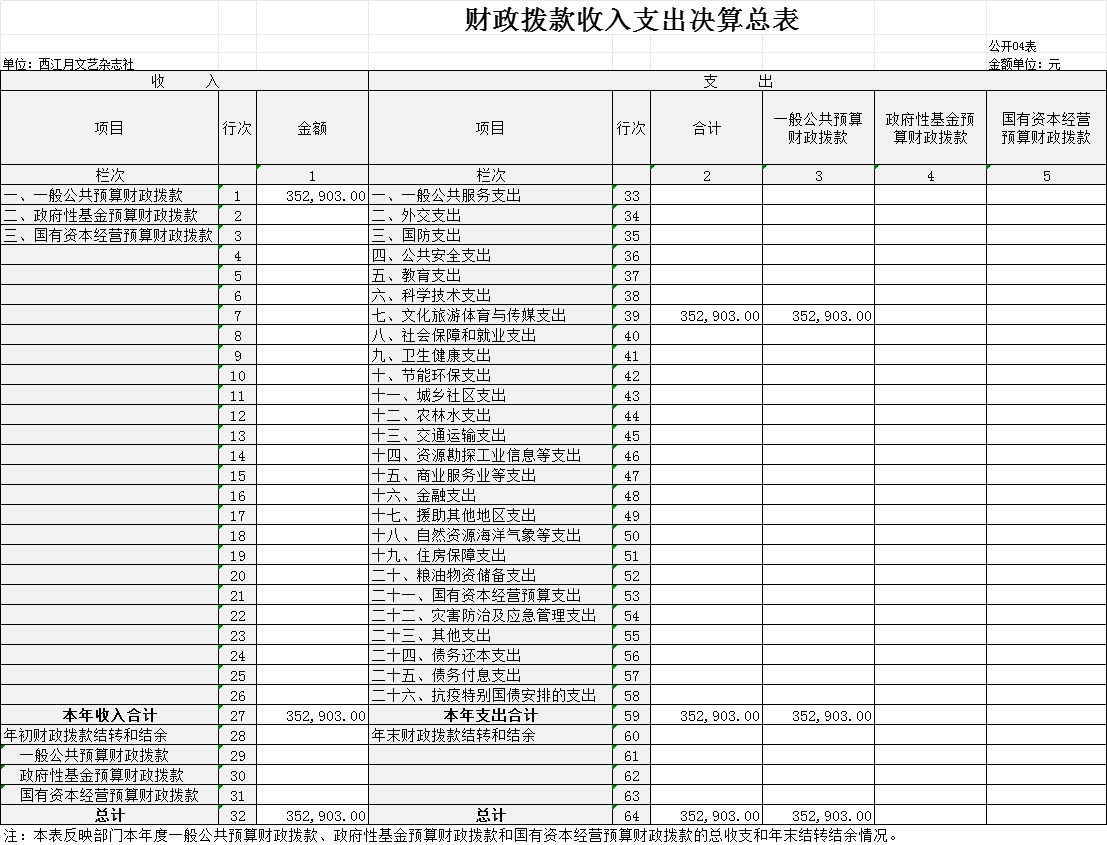 2023年單位決算報表(此部分另附表格,詳見《附件:西江月文藝雜志社2023年度單位決算公開表》)