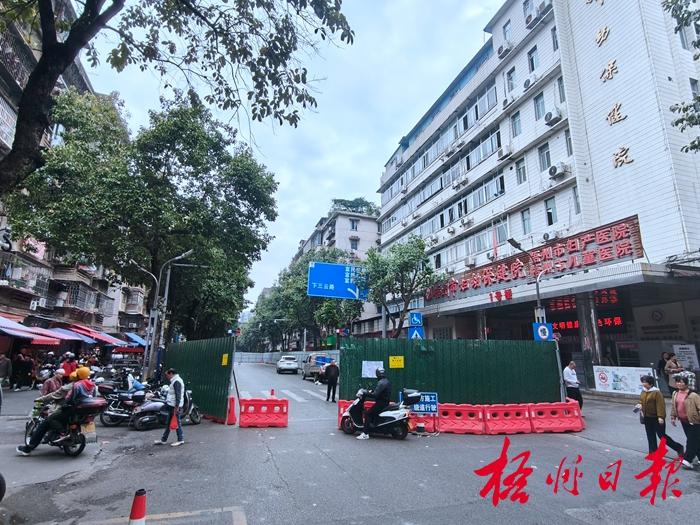 12月10日,在蝶山一路市婦幼保健院附近,部分道路已被擋板圍蔽。