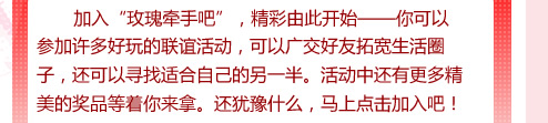 3.通過單位團組織報名加入“玫瑰牽手吧”的會員,會員費的交納和會員證的領(lǐng)取請與該單位團組織聯(lián)系。