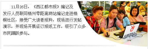 自9月中旬梧州日報、零距離網站“‘走基層、轉作風、改文風’基層大走訪系列活動”第一站走進藤縣后,“基層大走訪”被越來越多的市民所知曉,也引起了其他縣(市)熱心讀者和網友的關注。不少讀者來信、來電或發來郵件,希望記者們也到他們那里走走。更有很多熱心網友把自己或周圍的新鮮事、苦惱事發上零距離網的騎樓論壇,反映基層聲音。